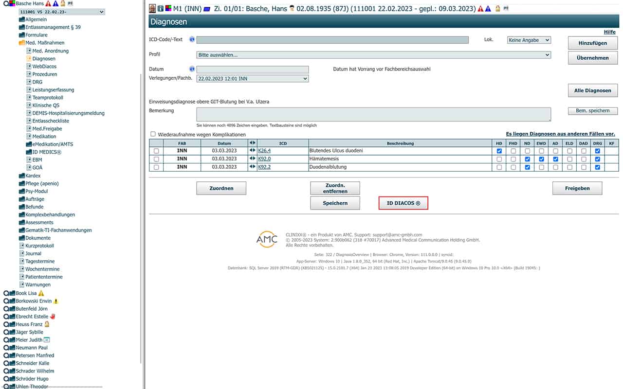 • Kopplung ID Clinical Context Coding (CCC) (nur in Verb. mit ID DIACOS)
