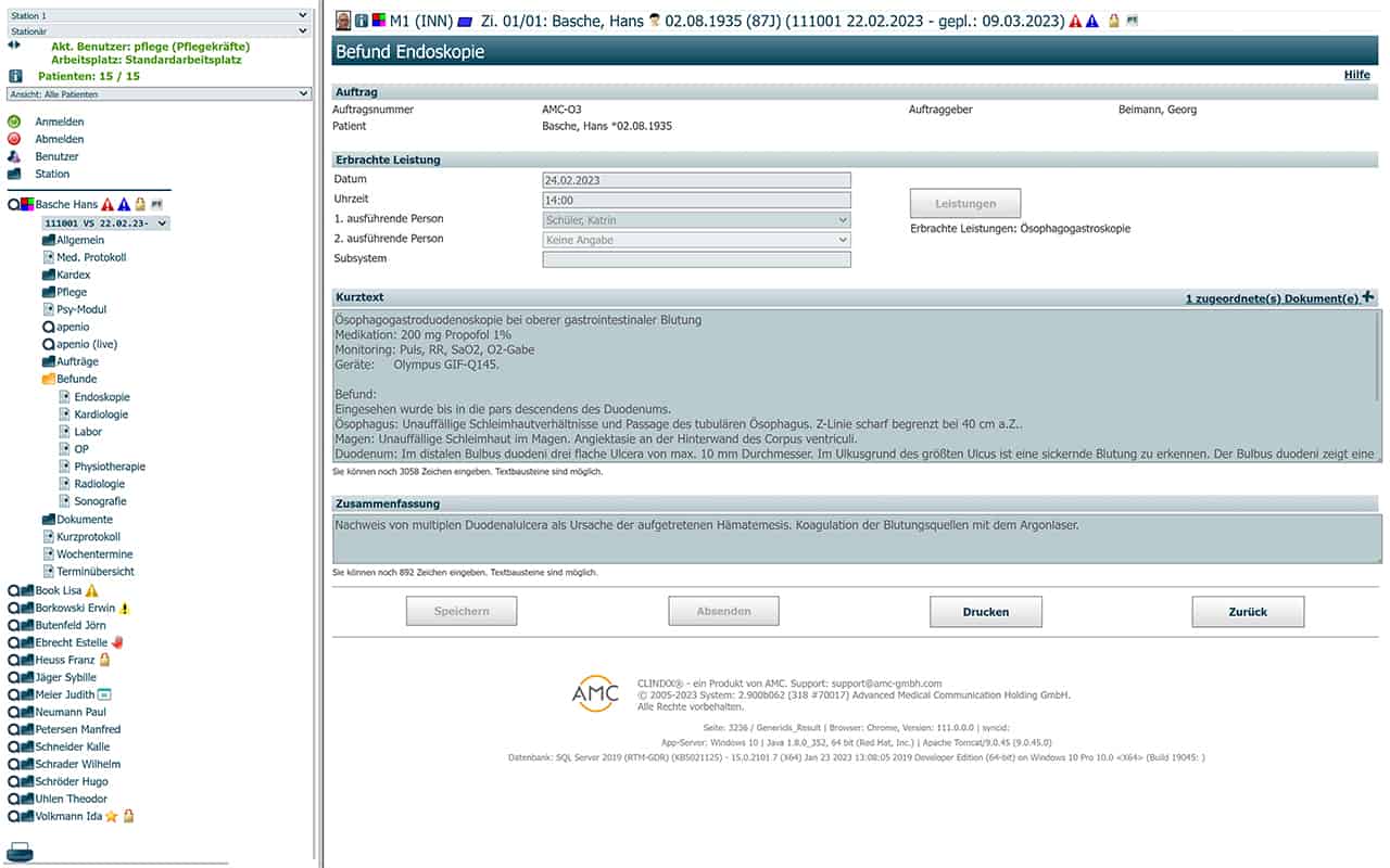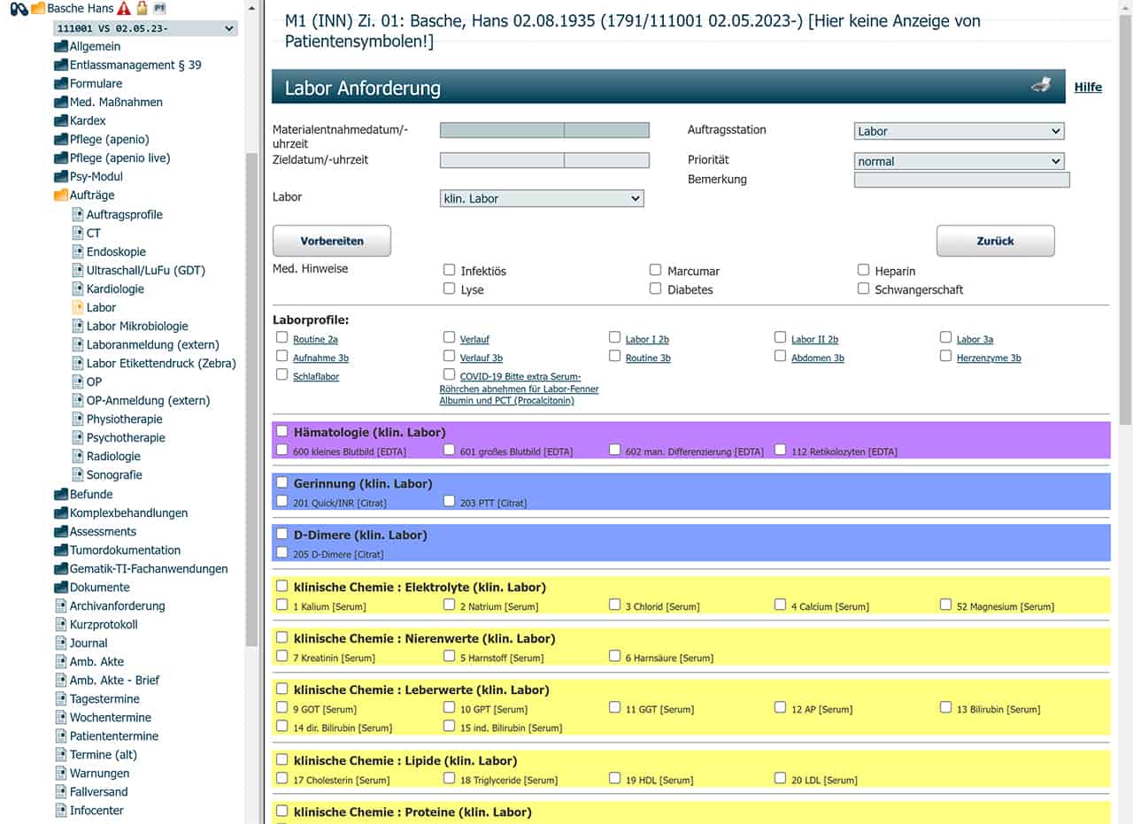 Aufträge zu und Befunde von CLINIXX(r)-Leistungsstellen, z.B.: