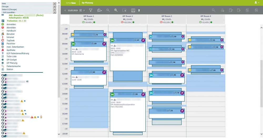 Langzeit-OP-Planung auf Timerbee-Engine bringt künstliche Intelligenz in Ihr Krankenhaus. Die Funktion bringt Zeiteinsparung, optimiert den Ressourceneinsatz, indem es Überstunden und Wechselzeiten minimiert und warnt frühzeitig vor Risiken. Dank den visualisierten Planalternativen fällt die Entscheidung für die zuständige Arbeitskraft leichter.