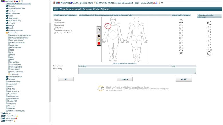 • Visual Analog Scale (VAS) -incl. pain point documentation-