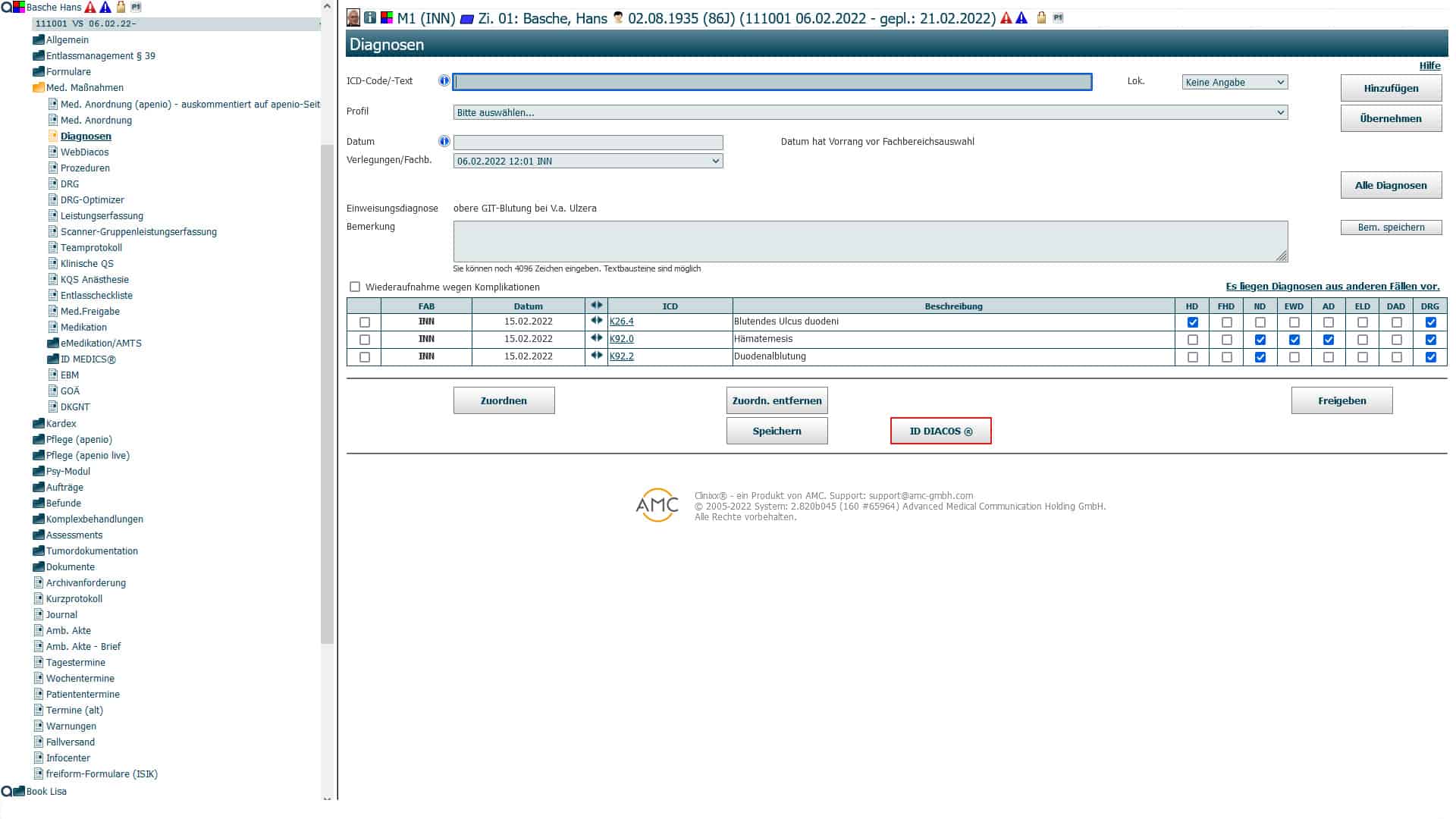 • Alpha-ID diagnosis catalog (coding of ICD codes with 75,000 additional alternative medical description texts)