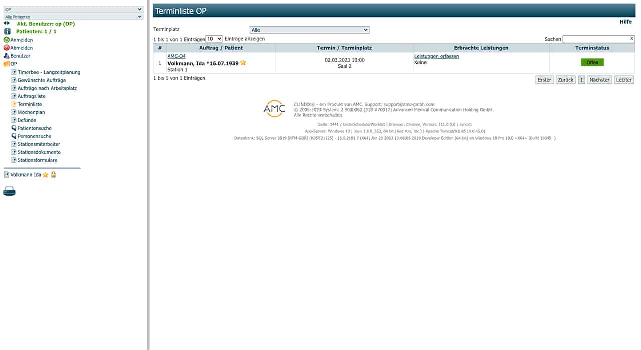 • Patienten-OP-Info für Stationsarbeitsplatz