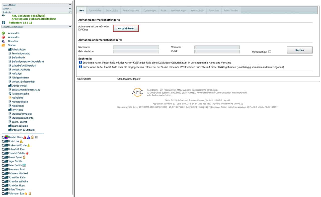 - Patientenaufnahme manuell/mit KVK/mit eGK