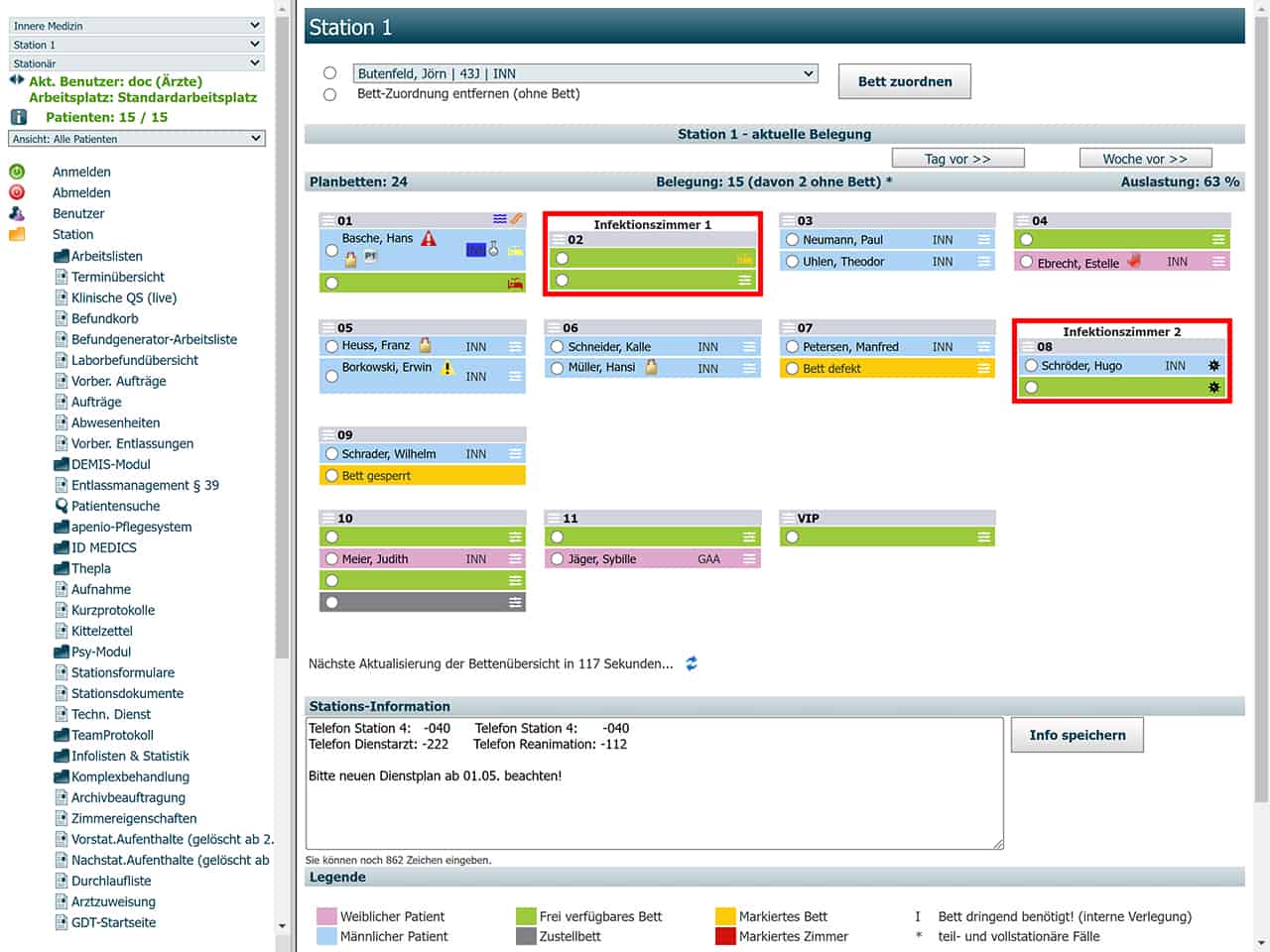 • Stationsübersicht / Bettenbelegung / Zimmerverwaltung