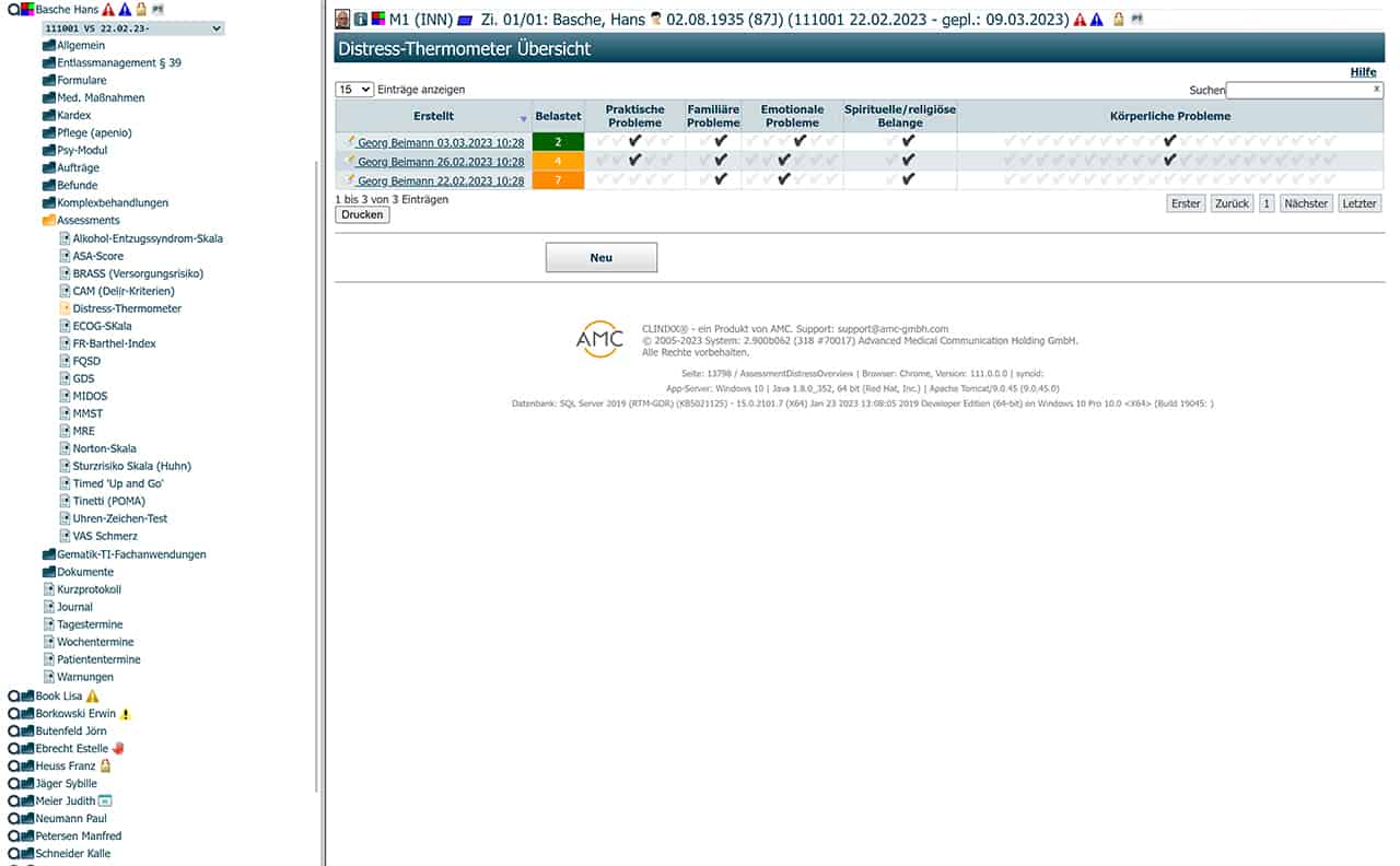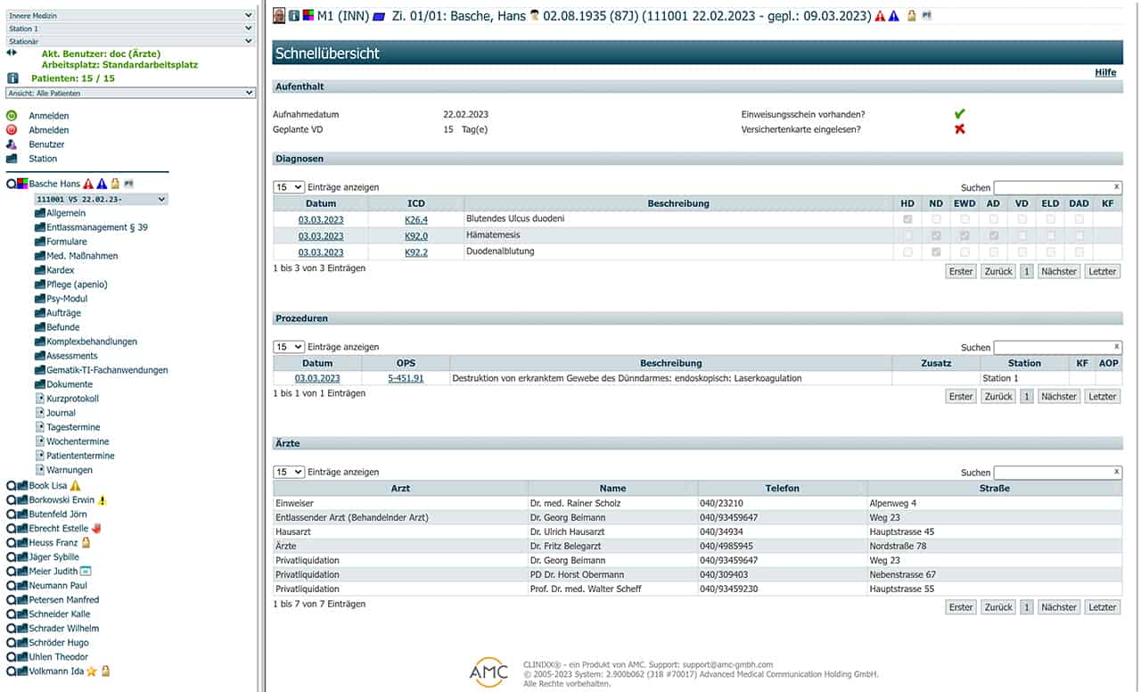 • Patientstatusübersicht